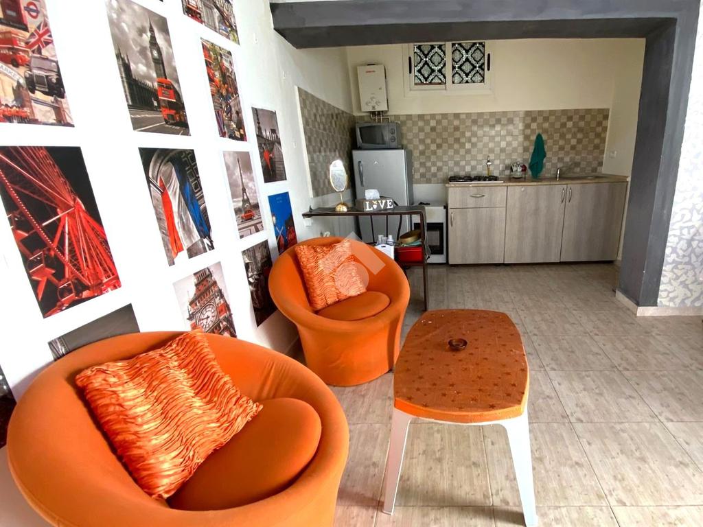 Cet étage de villa S+1, richement meublé, se compose d’un salon lumineux qui ouvre sur une kitchenette avec une plaque et un réfrigérateur, une chambre à coucher avec placard qui donne sur un balcon, ainsi qu’une salle de douche