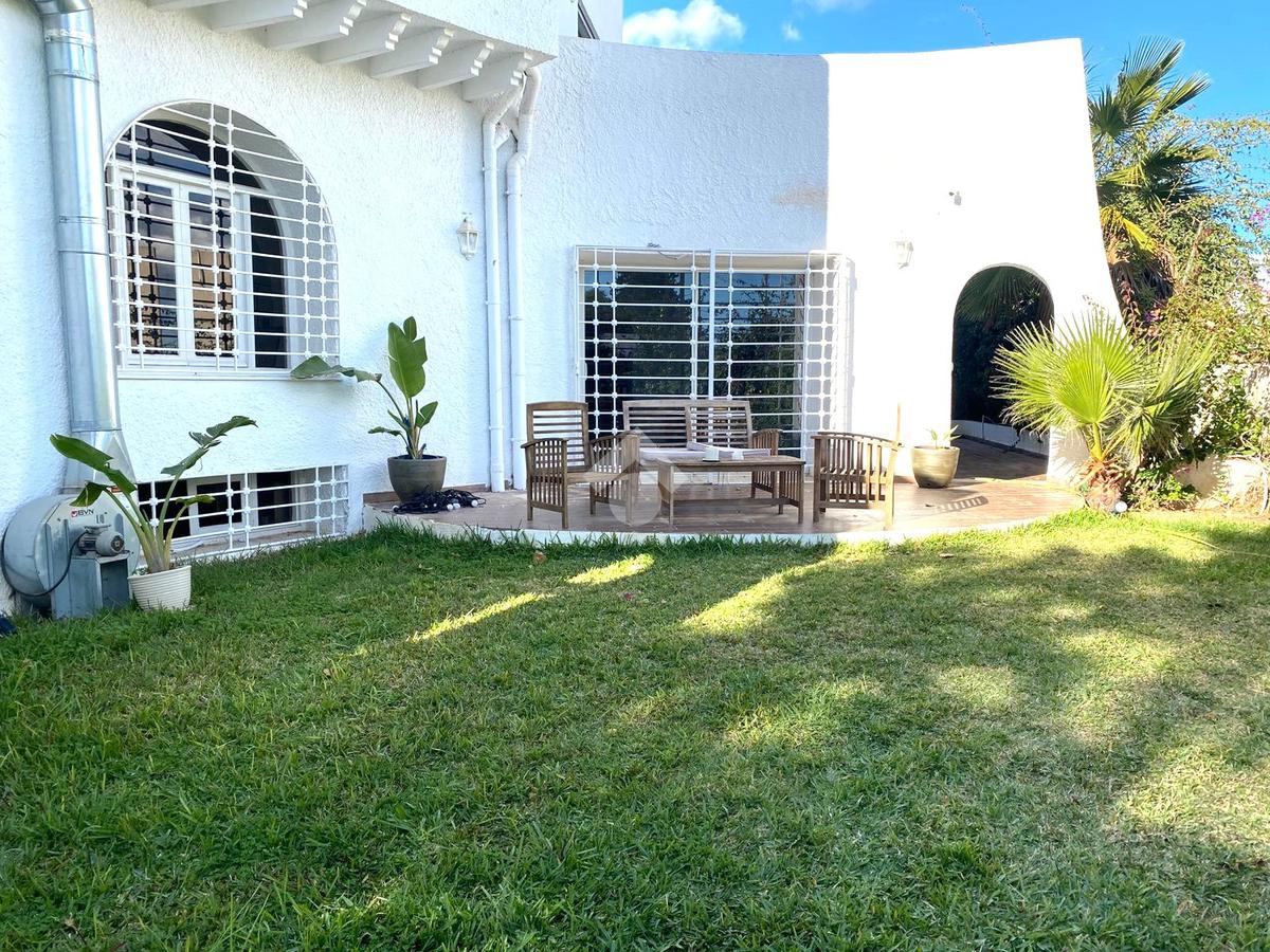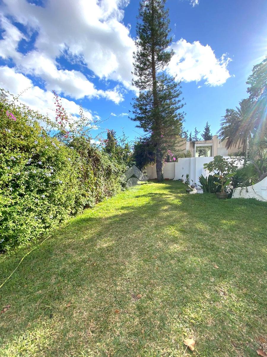 À l’extérieur, la villa dispose d’un jardin arboré et d’un abri pouvant accueillir trois voitures